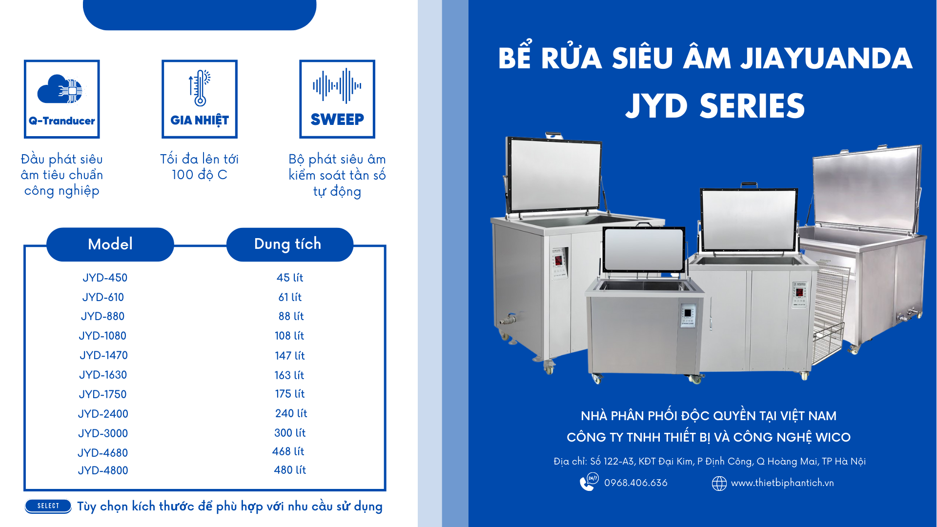 WICO nhà phân phối chính hãng Bể rửa siêu âm Jiayuanda tại Việt Nam: