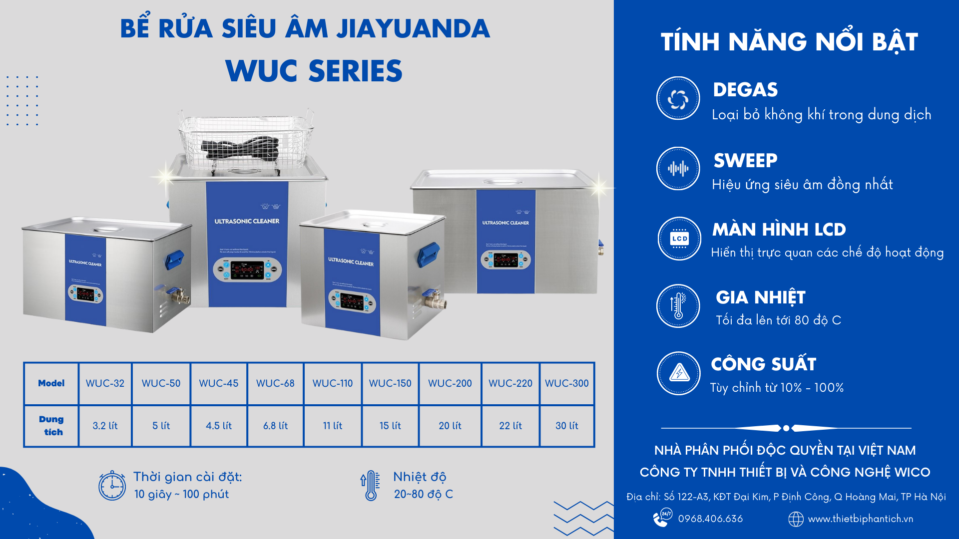 Từ ngày 24/05/2022 Công ty TNHH Thiết bị và Công nghệ WICO chính thức trở thành đại diện phân phối độc quyền các sản phẩm Bể rửa siêu âm Jiayuanda tại thị trường Việt Nam.