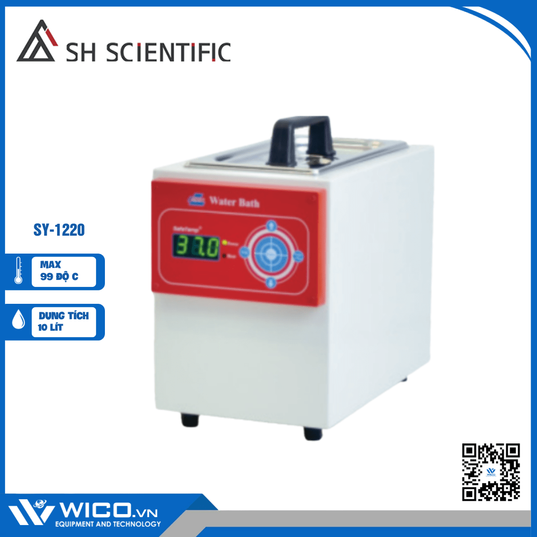 SY-1220 🌟 Bể cách thuỷ - Điều nhiệt có dung tích 10 lít kiểu nắp phẳng với nhiệt độ tối đa 99 độ C. Bể được thiết kế và chế tạo bởi hãng SH Scientific - Hàn Quốc. Bể có độ chính xác và kiểm soát nhiệt độ ổn định, đáp ứng nhu cầu sử dụng. Sản phẩm được nhập khẩu và phân phối chính hãng bởi Wico Việt Nam. Bảo hành lên tới 12 tháng. Hỗ trợ giao hàng toàn quốc.