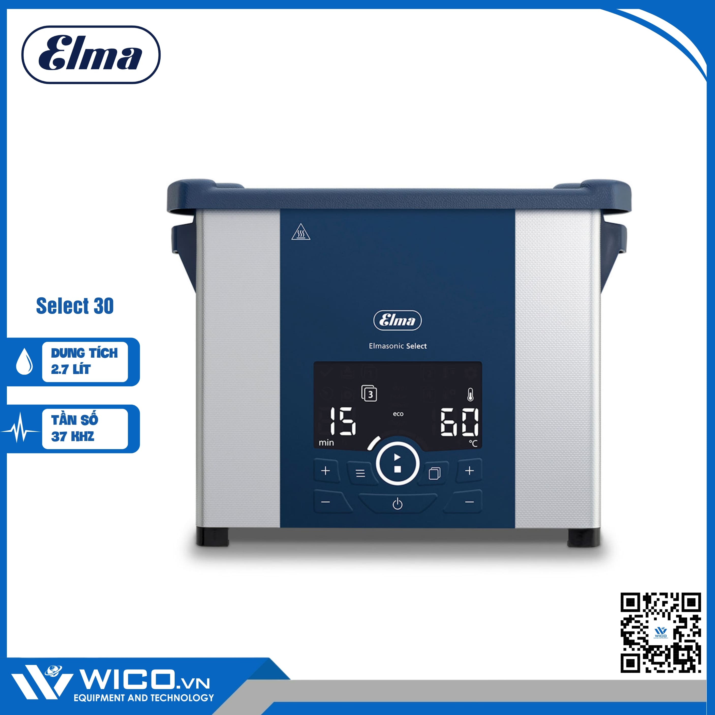Select 30 là Bể rửa siêu âm có gia nhiệt dung tích 2.7 lít, công suất siêu âm tối đa 480W. Bể được ứng dụng rộng rãi trong y tế, nha khoa, phòng thí nghiệm. Sản phẩm do hãng Elma- Đức sản xuất, được nhập khẩu và phân phối chính hãng bởi Wico Việt Nam. Bảo hành 12 tháng