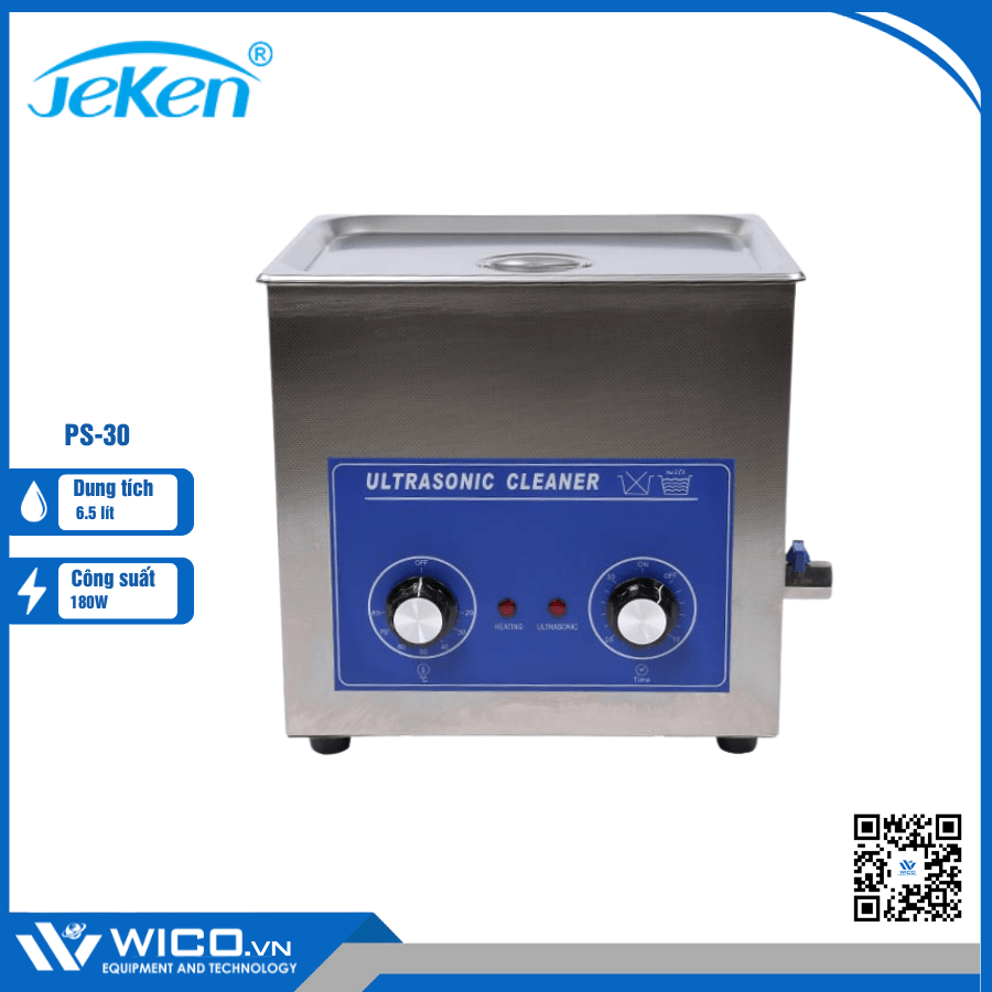 .PS-30 ⭐ Bể rửa siêu âm công suất lớn với tần số 40kHz, dung tích 6.5 lít do hãng Jeken thiết kế và chế tạo. Bể có bộ điều khiển kiểu cơ núm vặn có gia nhiệt với 2 núm cài đặt riêng biệt cho phép cài đặt nhiệt độ tối đa lên tới 80 độ C, thời gian cài đặt 30 phút. Sản phẩm được nhập khẩu và phân phối chính hãng bởi Wico Việt Nam. Bảo hành lên tới 12 tháng. Hỗ trợ giao hàng trên toàn quốc