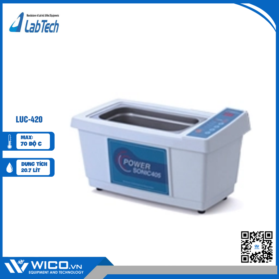 LUC-420⭐Bể rửa siêu âm chuyên dụng do hãng Labtech Hàn Quốc thiết kế và chế tạo. Với dung tích 20.7 lít cùng chức năng gia nhiệt lên tới 70 độ C. Hệ thống điều khiển vi xử lý màn hình LED dễ dàng cài đặt và sử dụng. Sản phẩm được nhập khẩu phân phối chính hãng bởi Wico Việt Nam. Bảo hành 12 tháng.