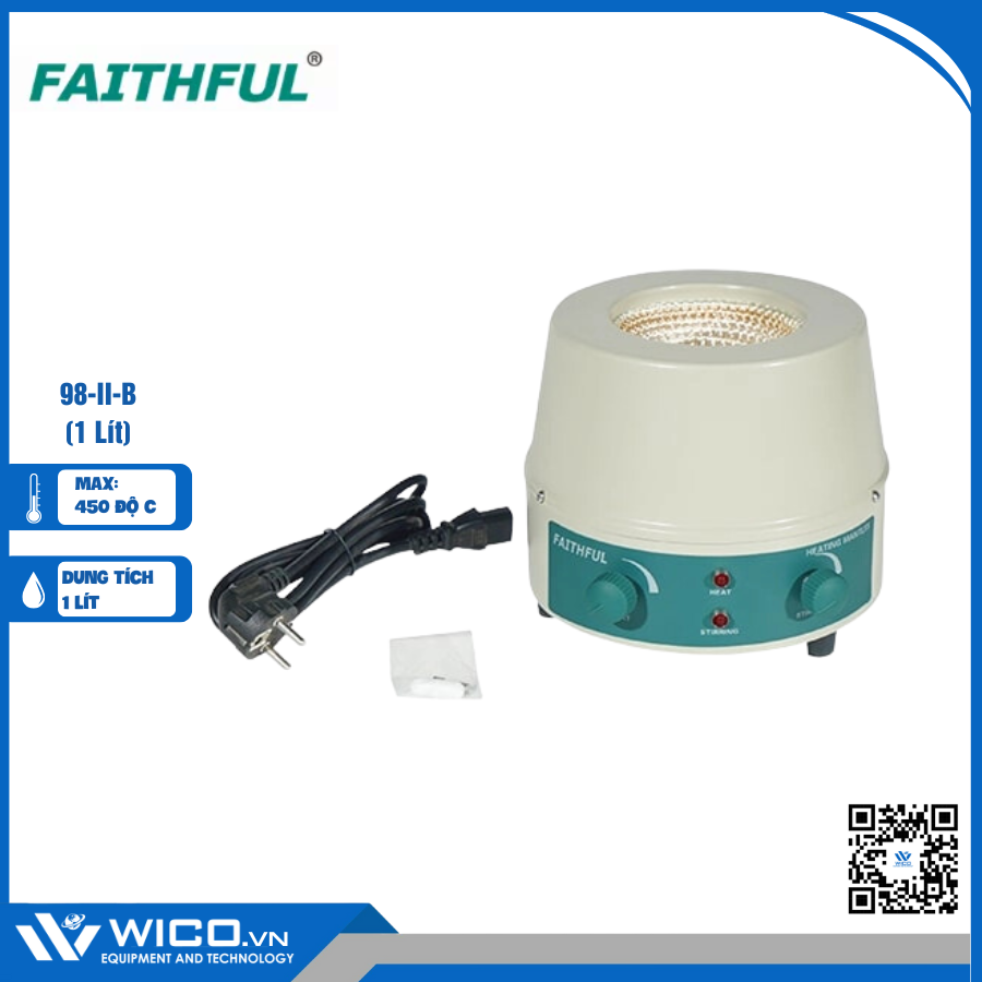 Bếp đun bình cầu 98-I-B 🌟 100% sản phẩm chính hãng Faithful Trung Quốc. Nhiệt độ tối đa 450 độ C. Với dung tích 1000ml. Sản phẩm được phân phối chính hãng - Bảo hành 12 tháng bởi Wico Việt Nam. Bảo hành trong vòng 12 tháng. Hỗ trợ giao hàng trên toàn quốc