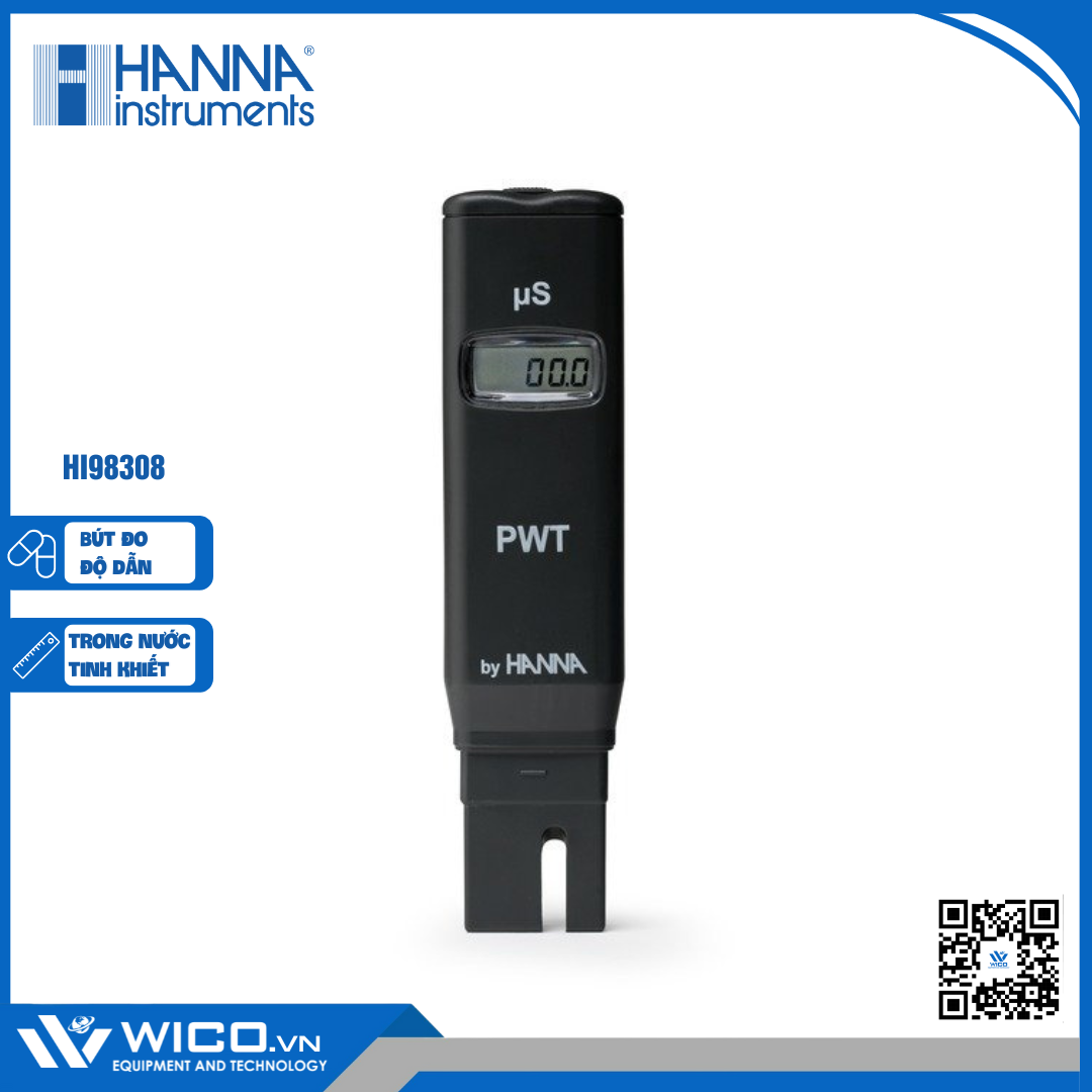 Bút đo độ dẫn siêu thấp từ 0.0 đến 99.9 µS/cm HI98308 chuyên dùng cho nước tinh khiết là sản phẩm của hãng Hanna và được phân phối chính hãng bởi Wico Việt Nam.