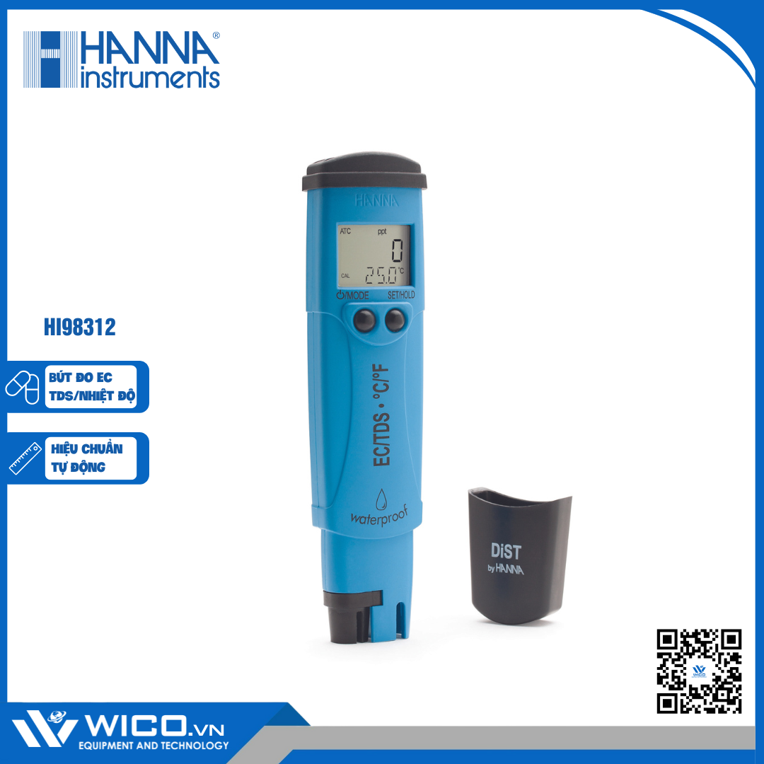 Bút đo EC/TDS/Nhiệt độ thang cao HI98312 với hiệu chuẩn tự động với nút CAL ⭐ là sản phẩm của hãng Hanna và được nhập khẩu, phân phối chính hãng bởi Wico Việt Nam.