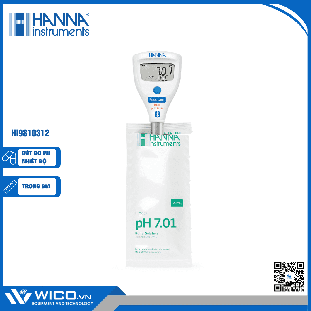 Bút đo pH/nhiệt độ HALO2 Bluetooth trong bia HI9810312 là bút đo pH không dây chuyên nghiệp, thuộc dòng HALO2 của Hanna Instruments. Mô-đun Bluetooth giúp máy đo kết nối với các thiết bị điện tử qua app Hanna Lab. Thiết kế dạng bút đo bỏ túi, nhỏ gọn Đo độ pH trực tiếp của các mẫu nghiền, hèm nguội và bia. Độ chính xác ±0.05 pH Máy đo đi kèm đầy đủ đầu dò, dung dịch chuẩn, pin. Rất được ưa chuộng và phổ biến trong ngành công nghiệp sản xuất bia.
