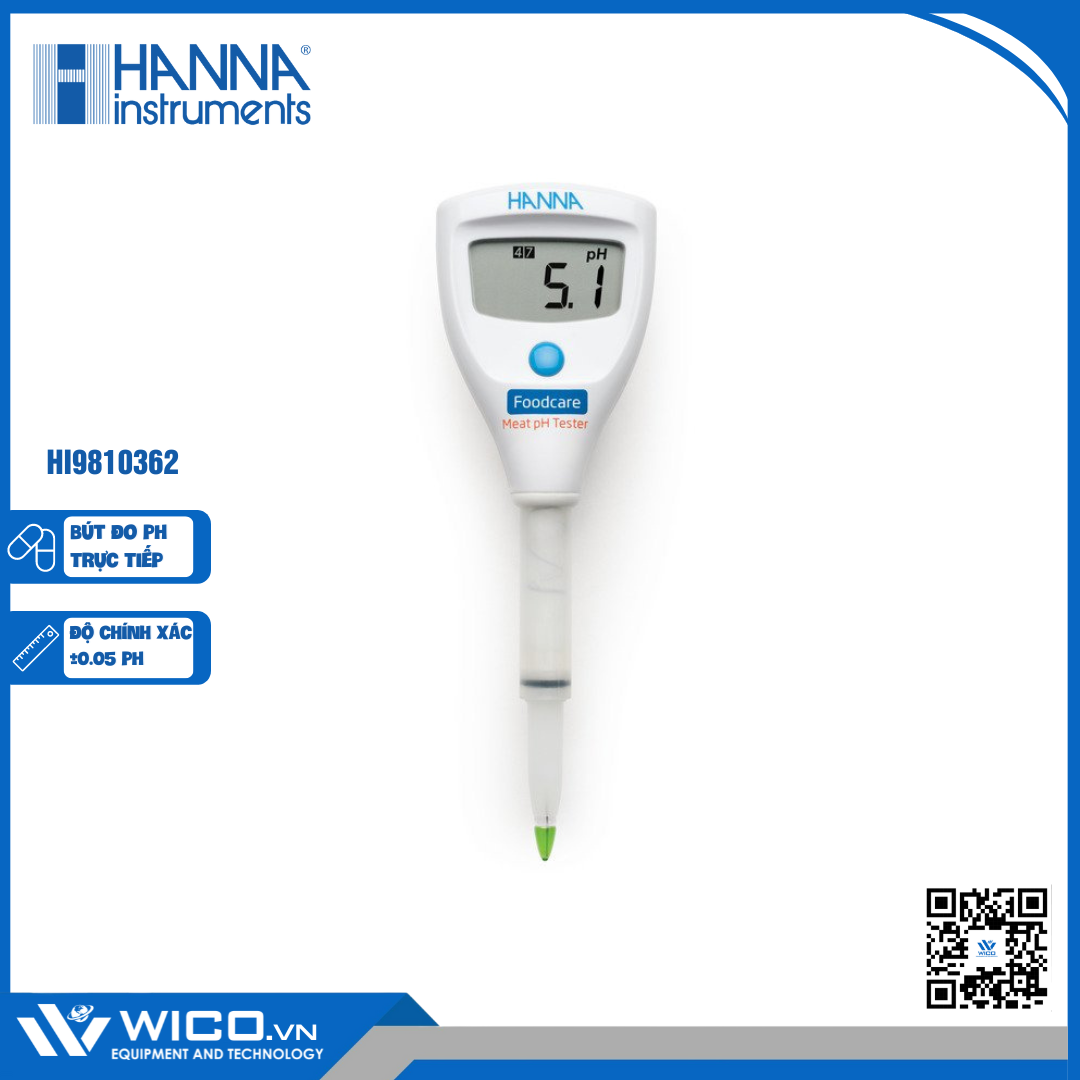 Bút đo pH/nhiệt độ HALO2 Bluetooth trong thịt và nước HI9810362 do hãng Hanna - USA sản xuất. Được nhập khẩu và phân phối chính hãng bởi Công ty TNHH Thiết bị và Công nghệ WICO.