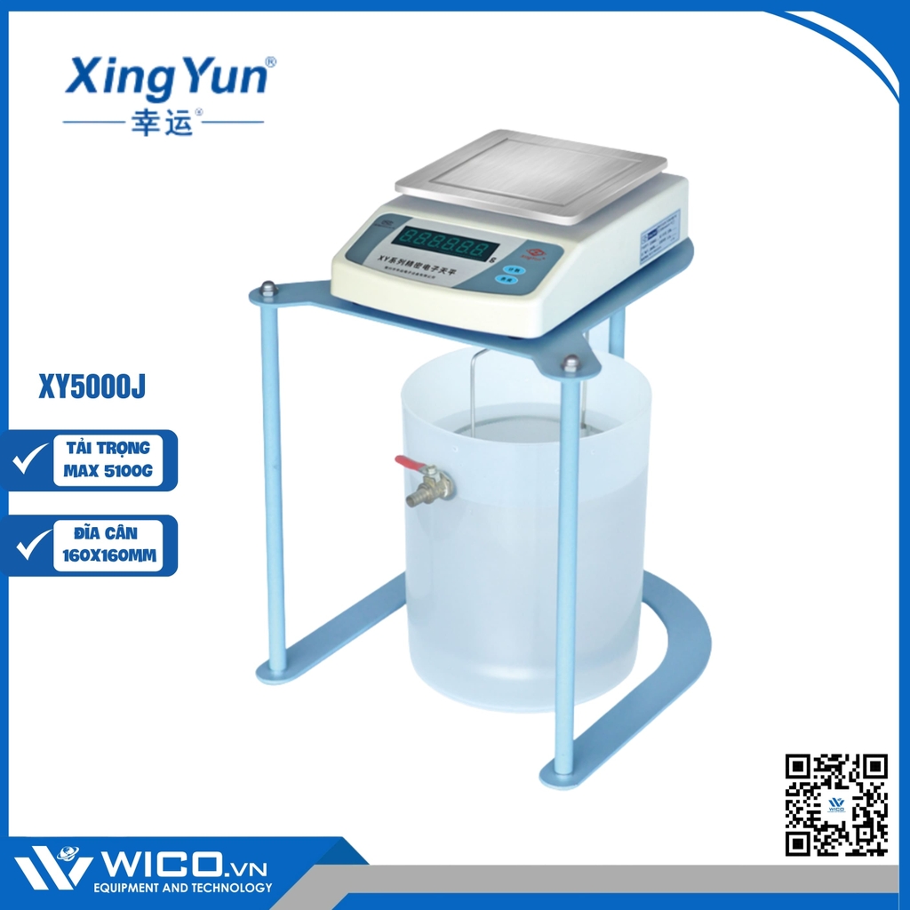 - Cân thủy tĩnh XY5000J với khả năng cân tối đa 5100g do hãng XingYun sản xuất. Được nhập khẩu chính hãng bởi công ty Wico.