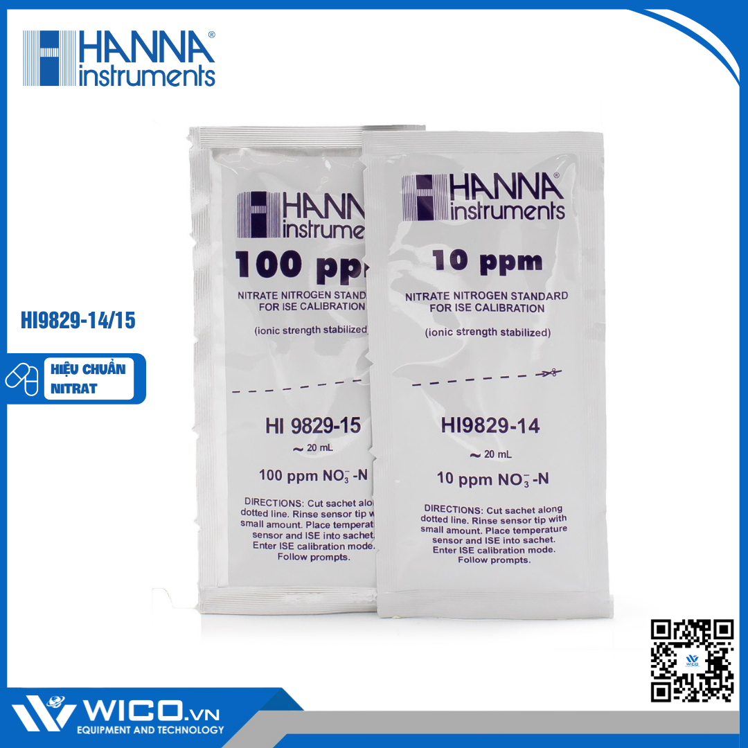 - Cắt miệng gói dung dịch chuẩn. - Để kiểm tra độ chính xác của điện cực ISE Nitrat HI7609829-12 + Để máy ở chế độ đo. + Nhúng chìm phần đầu điện cực, cảm biến và mối nối hoàn toàn vào gói dung dịch chuẩn + Máy sẽ đọc ra kết quả đo ở giá trị 10ppm là bình thường. + Nếu giá trị nằm ngoài khoảng này, hiệu chuẩn lại máy đo và điện cực - Hiệu chuẩn: Vào chế độ hiệu chuẩn của máy, làm theo hướng dẫn sử dụng của điện cực hoặc máy đo tương ứng. => Nếu không thể hiệu chuẩn được, điện cực có thể bị hỏng hoặc máy bị lỗi, liên hệ kỹ thuật HANNA 028.39260.457 để được hỗ trợ. |