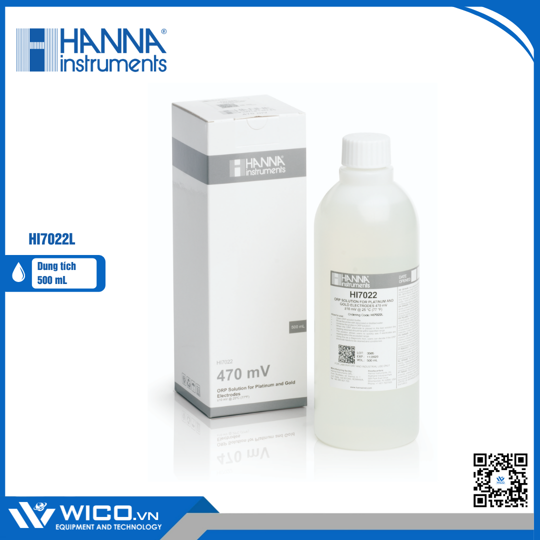 HI7022 là một dung dịch chuẩn ORP 470mV dùng để kiểm tra hiệu suất của các điện cực ORP. Khi đặt điện cực ORP vào dung dịch này, giá trị thu được phải nằm trong khoảng ±10mV của giá trị 470mV @25°C. Dung dịch này giúp người dùng nhanh chóng kiểm tra xem liệu các điện cực ORP đang sử dụng có đang đọc chính xác hay không. Đây giống như một công cụ chẩn đoán, người dùng sau đó có thể quyết định xem điện cực ORP có cần được làm sạch và điều hòa hay không. Dung dịch chuẩn được sản xuất trong cơ sở sản xuất hiện đại của Hanna bằng cách sử dụng các hóa chất tinh khiết trong môi trường được kiểm soát nhiệt độ.