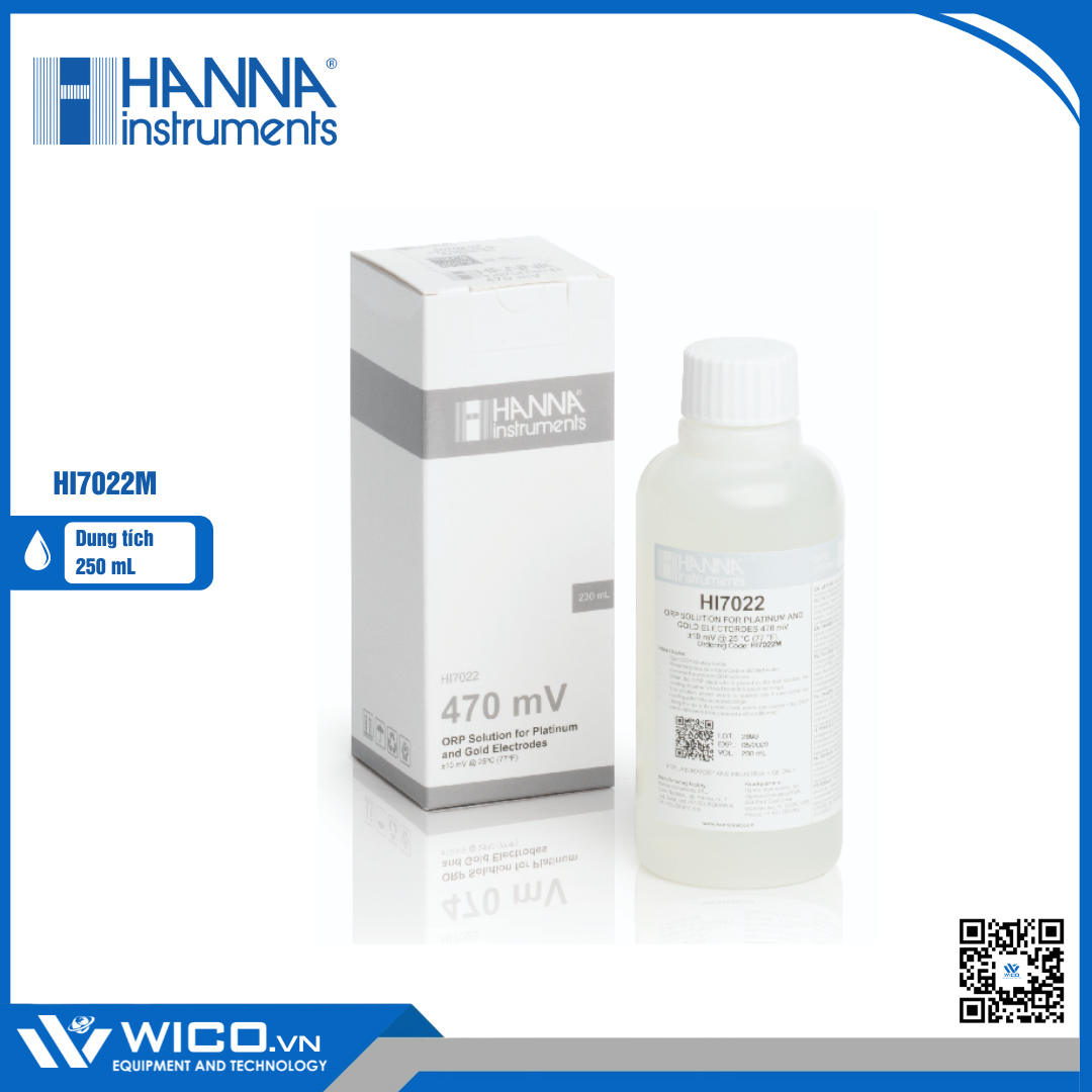 HI7022 là một dung dịch chuẩn ORP 470mV dùng để kiểm tra hiệu suất của các điện cực ORP. Khi đặt điện cực ORP vào dung dịch này, giá trị thu được phải nằm trong khoảng ±10mV của giá trị 470mV @25°C. Dung dịch này giúp người dùng nhanh chóng kiểm tra xem liệu các điện cực ORP đang sử dụng có đang đọc chính xác hay không. Đây giống như một công cụ chẩn đoán, người dùng sau đó có thể quyết định xem điện cực ORP có cần được làm sạch và điều hòa hay không. Dung dịch chuẩn được sản xuất trong cơ sở sản xuất hiện đại của Hanna bằng cách sử dụng các hóa chất tinh khiết trong môi trường được kiểm soát nhiệt độ.