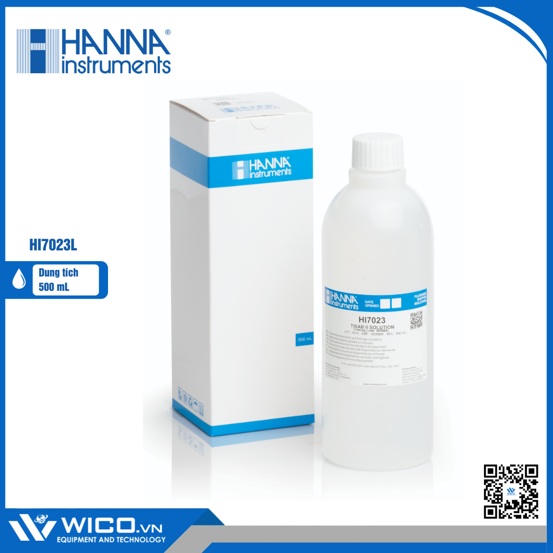 HI7023L là dung dịch TISAB điều chỉnh cường độ ion cho các điện cực chọn lọc ion florua (ISE). Các dung dịch Hanna ISA được xây dựng để khắc phục cường độ ion của mẫu và các tiêu chuẩn sao cho chúng đều không đổi. Không cần bổ sung ISA, một điện cực chọn lọc ion sẽ đo độ hoạt động ion đó; khi thêm ISA ổn định cường độ ion và cho phép đo như nồng độ ion. Với một số ISE, dung dịch ISA cũng được sử dụng để điều chỉnh độ pH của dung dịch hoặc loại bỏ bất kỳ nhiễu tiềm ẩn nào từ các ion cạnh tranh có mặt.