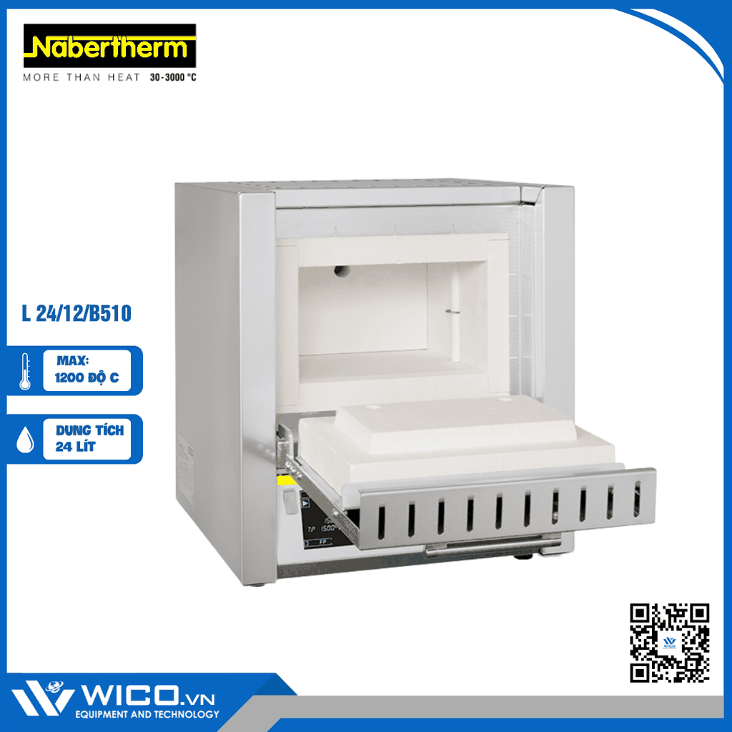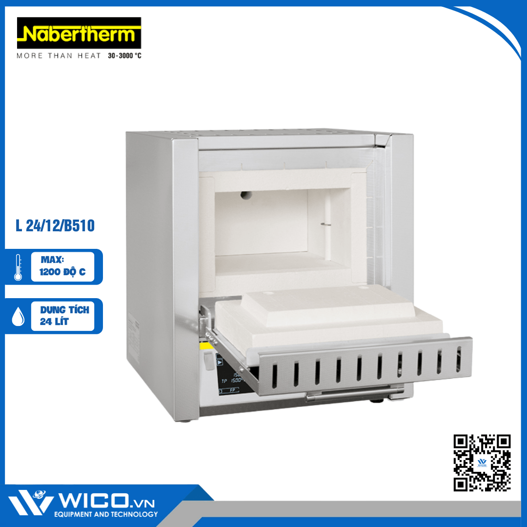L 24/11/B510⭐Lò nung chuyên dụng do hãng Nabertherm - Đức thiết kế chế tạo. Với dung tích 24 lít, bộ điều khiển B510 phiên bản 2022 thay thế cho bộ điều khiển cũ B410. Lò được chia thành 2 loại chính: L – Dòng lò nung cửa lật, LT- Dòng lò nung cửa đẩy trượt.Nhập Khẩu và Phân Phối bởi Wico Việt Nam. Cam kết 100% sản phẩm chính hãng. Bảo hành lên tới 12 tháng. Hỗ trợ giao hàng toàn quốc.