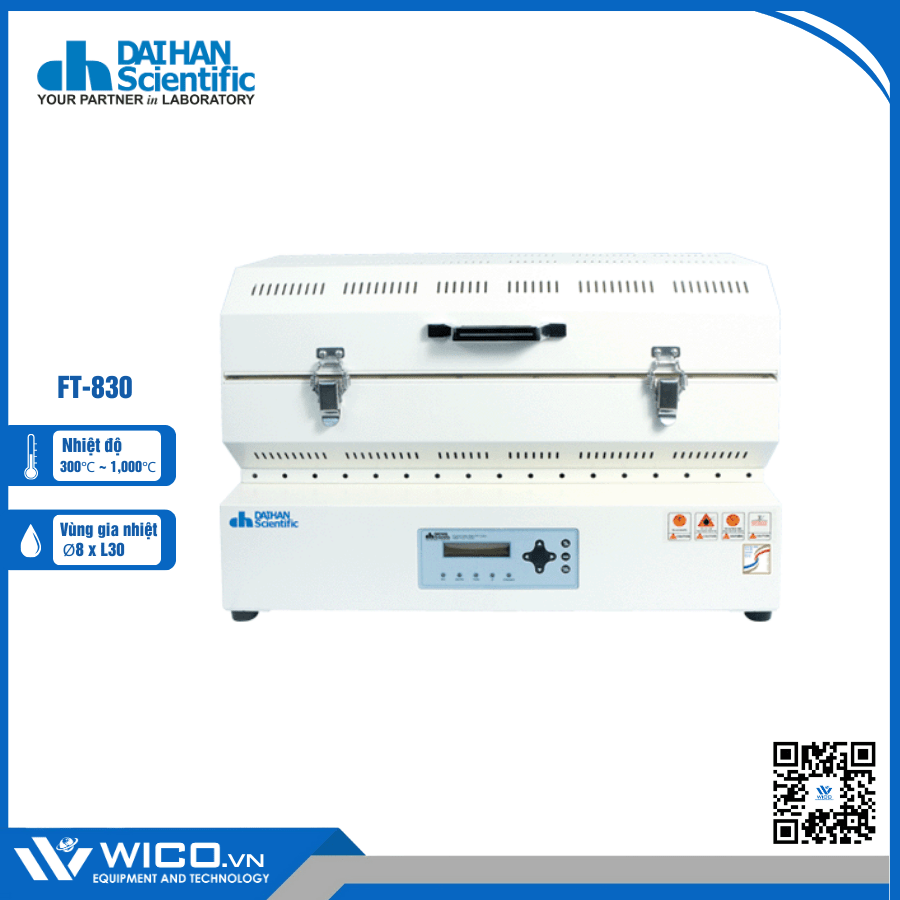 FT-830 ⭐ Lò nung ống đơn 1000 độ C, đường kính gia nhiệt 8cm, chiều dài vùng gia nhiệt 30cm. Lò sử dụng bộ điều khiển PID với phím Jog- Dial (Turn + Push). Sản phẩm do hãng Daihan - Hàn Quốc sản xuất, nhập khẩu và phân phố chính hãng bởi Wico Việt Nam. Bảo hành lên tới 12 tháng. Hỗ trợ giao hàng toàn quốc