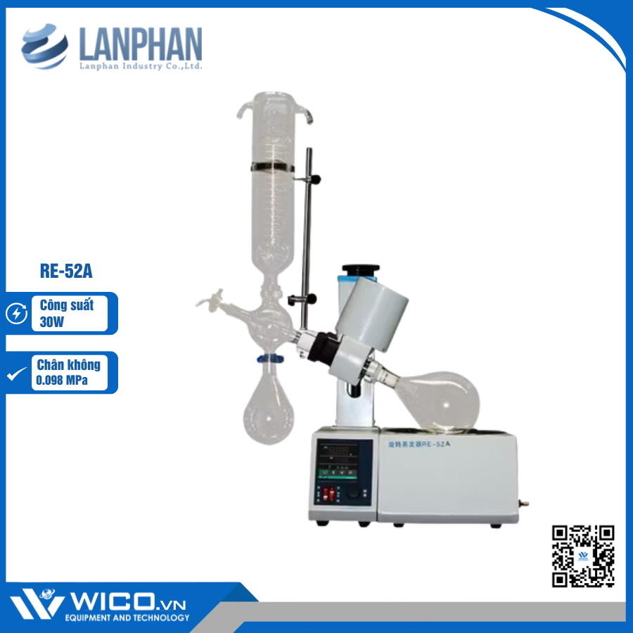 RE-52A ⭐ máy cô quay chân không với dung tích bình hứng 1 lít được sử dụng rộng rãi trong lĩnh vực dược phẩm, công nghệ sinh học,… sản xuất bởi hãng Lanphan - Trung Quốc được nhập khẩu và phân phối chính hãng bởi Wico Việt Nam. Bảo hành lên tới 12 tháng. Hỗ trợ giao hàng toàn quốc.