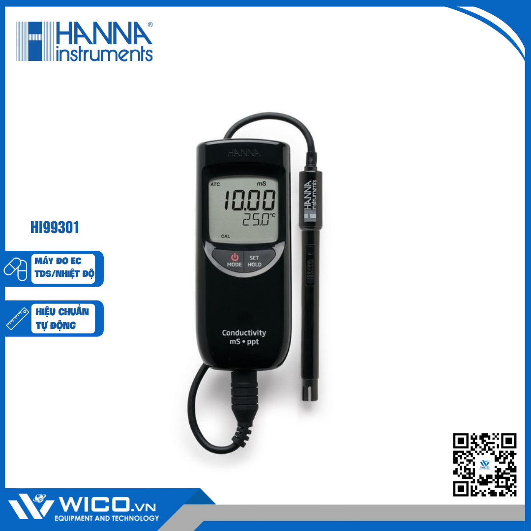 Máy đo EC/TDS/Nhiệt Độ Thang Cao Hanna HI99301 ⭐Máy đo EC / TDS và nhiệt độ cầm tay, không thấm nước HI99301 phù hợp sử dụng trong các ứng dụng đa dạng như xử lý nước thải, thẩm thấu ngược, và HVAC do hãng Hanna thiết kế theo dạng cầm tay nhỏ gọn. Sản phẩn được phân phối chính hãng bởi Wico Việt Nam