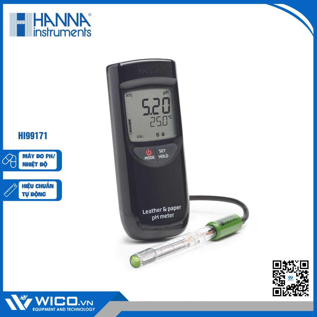 Máy đo pH/Nhiệt độ cho bề mặt giấy và da thuộc dạng cầm tay nhỏ gọn HI99171 ⭐ do hãng Hanna thiết kế chế tạo và được phân phối chính hãng bởi Wico Việt Nam