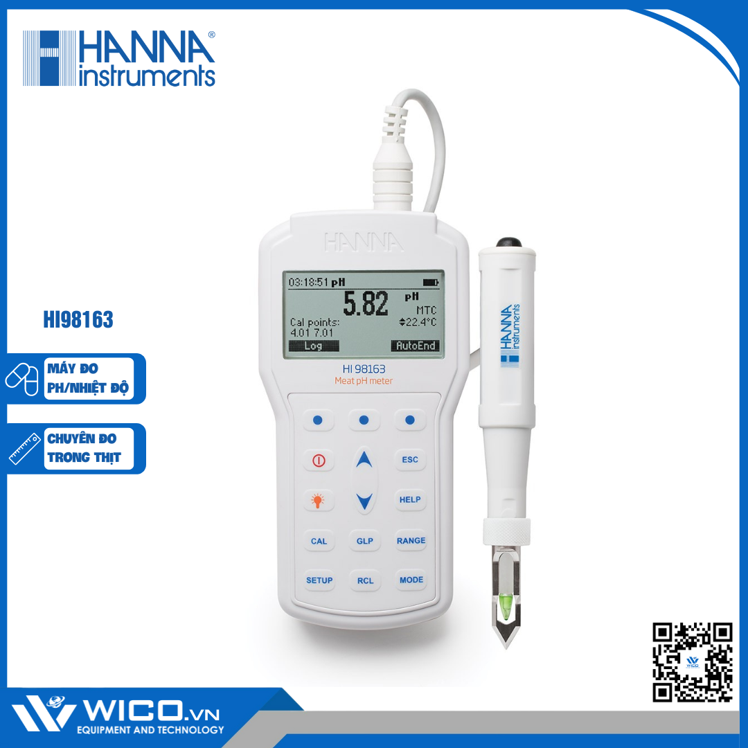 Máy đo độ pH/Nhiệt độ trong thịt HI98163 có thiết kế cầm tay, nhỏ gọn với nhiều tính năng nổi bật: độ chính xác lên đến ±0.002 pH, hiệu chuẩn tự động tại 1 hoặc 2 điểm, bù nhiệt độ tự động,.... Hơn nữa, máy đo còn đi kèm đầy đủ phụ kiện để đo pH và vali đựng máy tiện lợi, chắc chắn khi di chuyển.