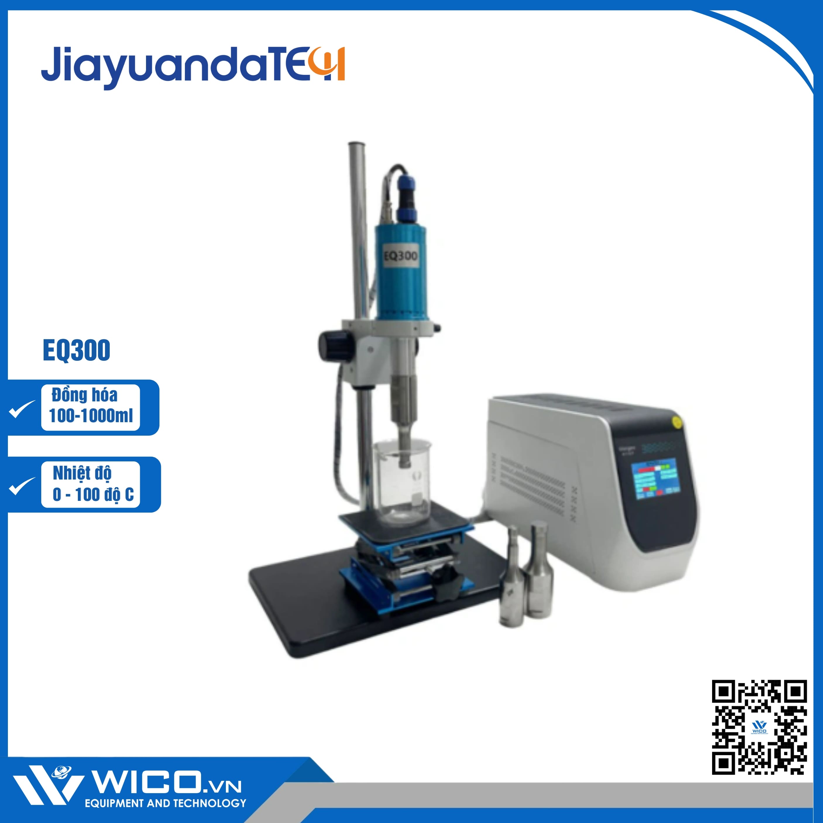EQ300 ⭐ Máy đồng hóa mẫu bằng sóng siêu âm với 100% sản phẩm chính hãng Jiayuanda – Trung Quốc. Máy có khả năng đồng hóa 100-1000ml (Tùy đầu đồng hóa) với công suât siêu âm 300W, nhiệt độ cài đặt tối đa 100 độ C. Sản phẩm được nhập khẩu và phân phối bởi Wico. Bảo hành 12 tháng, hỗ trợ giao hàng toàn quốc