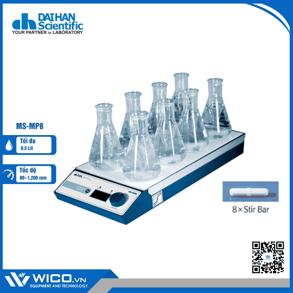 MS-MP8 ⭐ Máy khuấy từ không gia nhiệt 4 vị trí Tốc độ khuấy 80-1200 vòng/ phút. Mặt bếp 208x415mm bằng Inox 304, dễ vệ sinh. Sản phẩm do hãng Daihan - Hàn Quốc sản xuất, nhập khẩu và phân phố chính hãng bởi Wico Việt Nam. Bảo hành lên tới 12 tháng. Hỗ trợ giao hàng toàn quốc