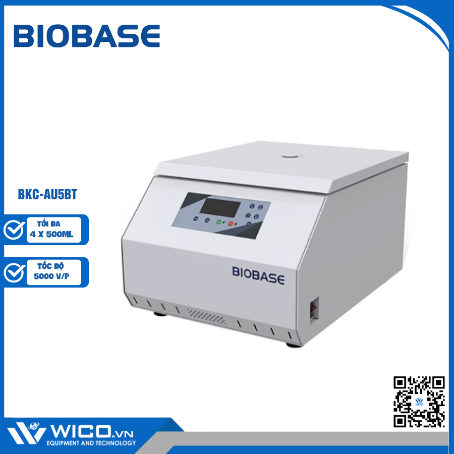 BKC-AU5BT 🌟 máy ly tâm có khả năng ly tâm tối đa 4 ống 500 ml, động cơ DC không chổi than. Tốc độ tối đa 5000 vòng/phút Hàng chính hãng Biobase Trung Quốc. Được nhập khẩu và phân phối chính hãng bởi Wico Việt Nam. Bảo hành 12 tháng. Ngoài ra có thể lựa chọn Rotor khác phù hợp với nhu cầu sử dụng.