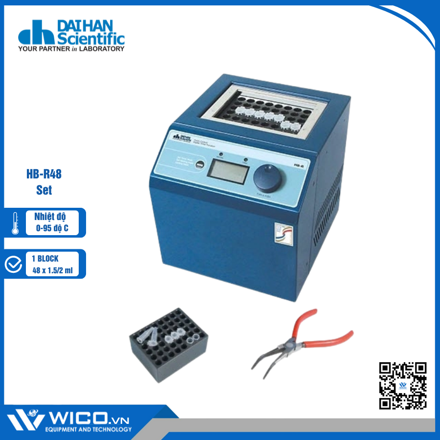 Máy Ủ Nhiệt Khô MaXtable HB-R48 (Set) 🌟 100% sản phẩm chính hãng Daihan - Hàn Quốc. Sử dụng 1 block. Đa dạng để lựa chọn: 0.2ml, 0.5ml, 1.5/2.0ml, 15ml, 50ml. Dải nhiệt độ -5 đến 95 độ C. Bộ điều khiển hiện số Fuzzy Control màn hình LCD. Sản phẩm được nhập khẩu và phân phối chính hãng bởi Wico Việt Nam. Bảo hành 12 tháng