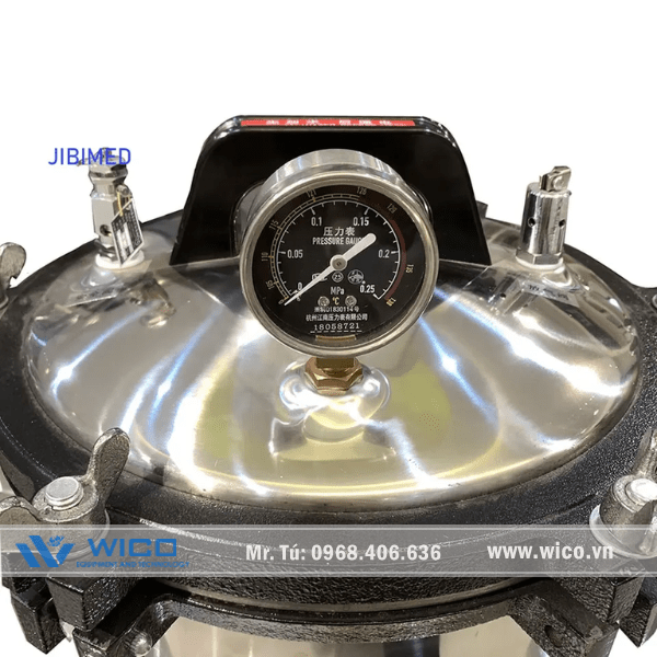 AC-24PL ⭐ Nồi hấp tiệt trùng để bàn do hãng Jibimed - Trung Quốc thiết kế chế tạo. Cho phép điều chỉnh áp suất: 0.14 – 0.16 Mpa và có van xả nước. Sản phẩm được thiết kế và chế tạo bởi hãng Jibimed - Trung Quốc. Cam kết 100% sản phẩm chính hãng. Bảo hành 12 tháng.