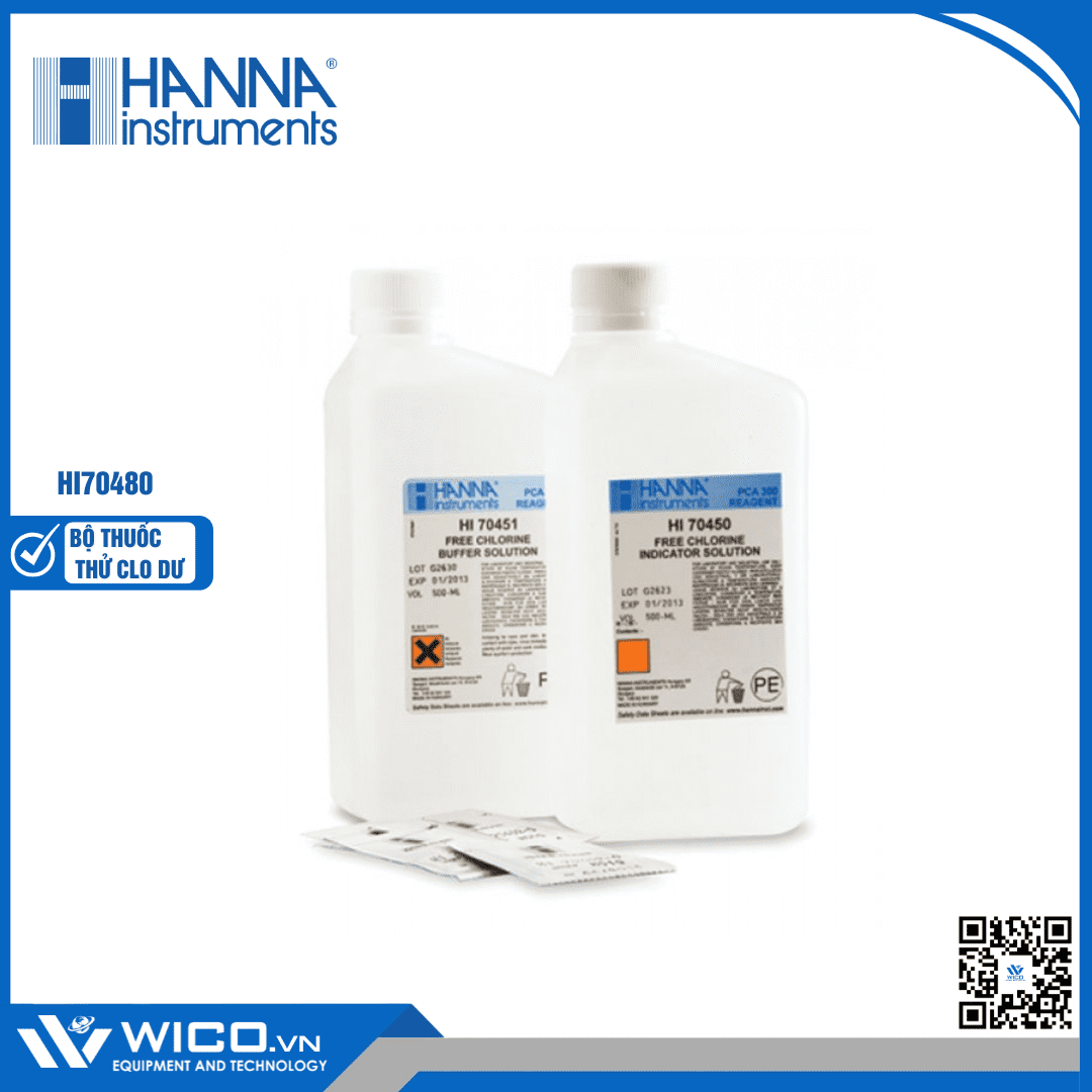 ✅ Thuốc thử clo dư dùng cho Máy phân tích PCA ✅ Bộ thuốc thử clo dư HI70480 bao gồm: 1. HI70450: Dung dịch chỉ thị clo dư cho PCA, 500 mL 2. HI70451: Dung dịch đệm clo dư cho PCA, 500 mL 3. HI70452: Thuốc thử DPD cho PCA, 5 gói bột