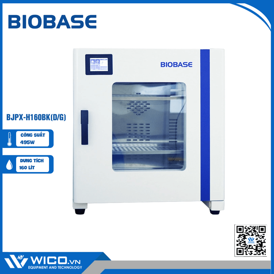 BJPX-H160BK(D/G) 🌟 Tủ ấm dung tích 160 lít, dải nhiệt độ RT + 5 ~ 65 độ C với bộ điều khiển vi xử lý màn hình LCD cảm ứng do hãng Biobase thiết kế và chế tạo. Sản phẩm được nhập khẩu và phân phối chính hãng bởi Wico Việt Nam. Bảo hành 12 tháng