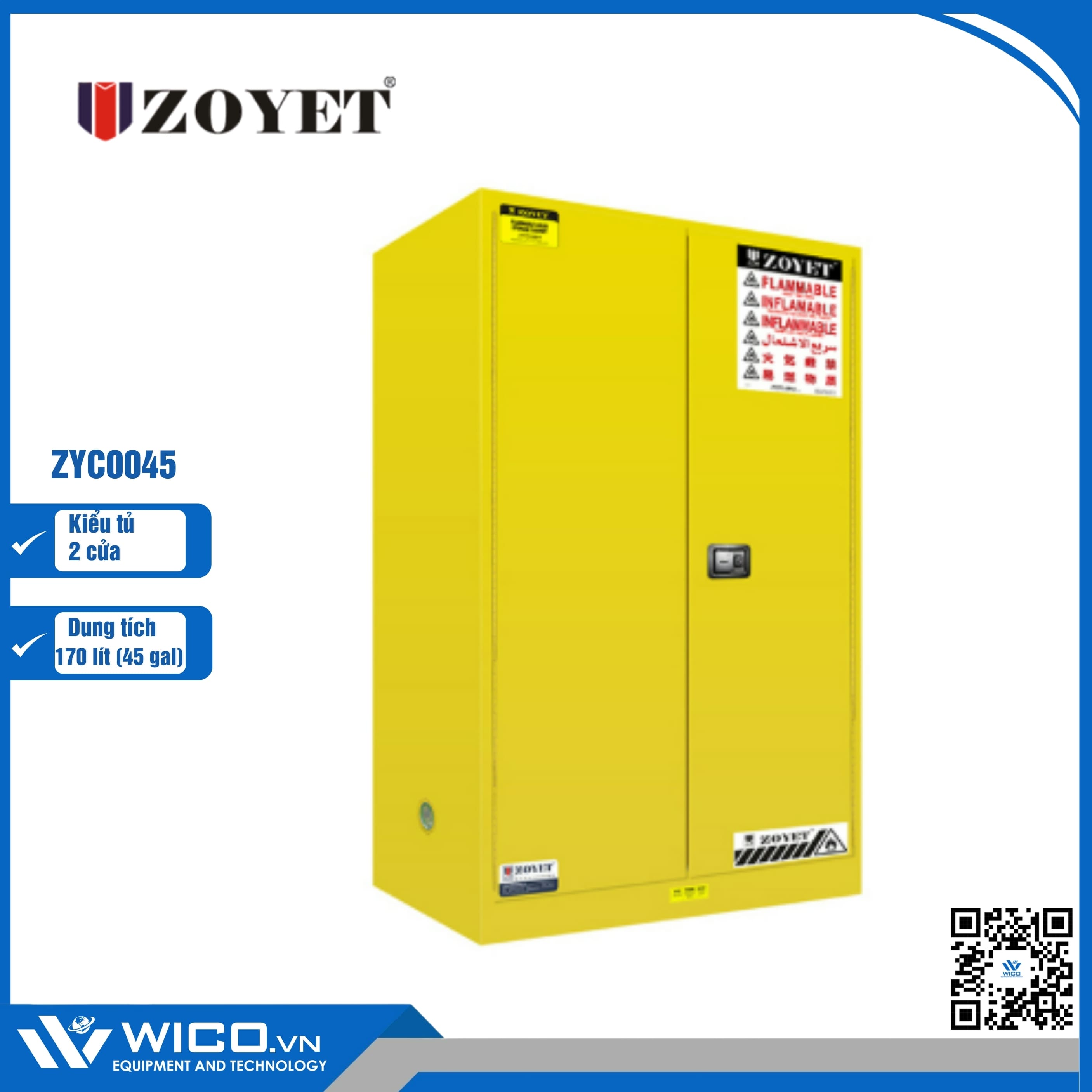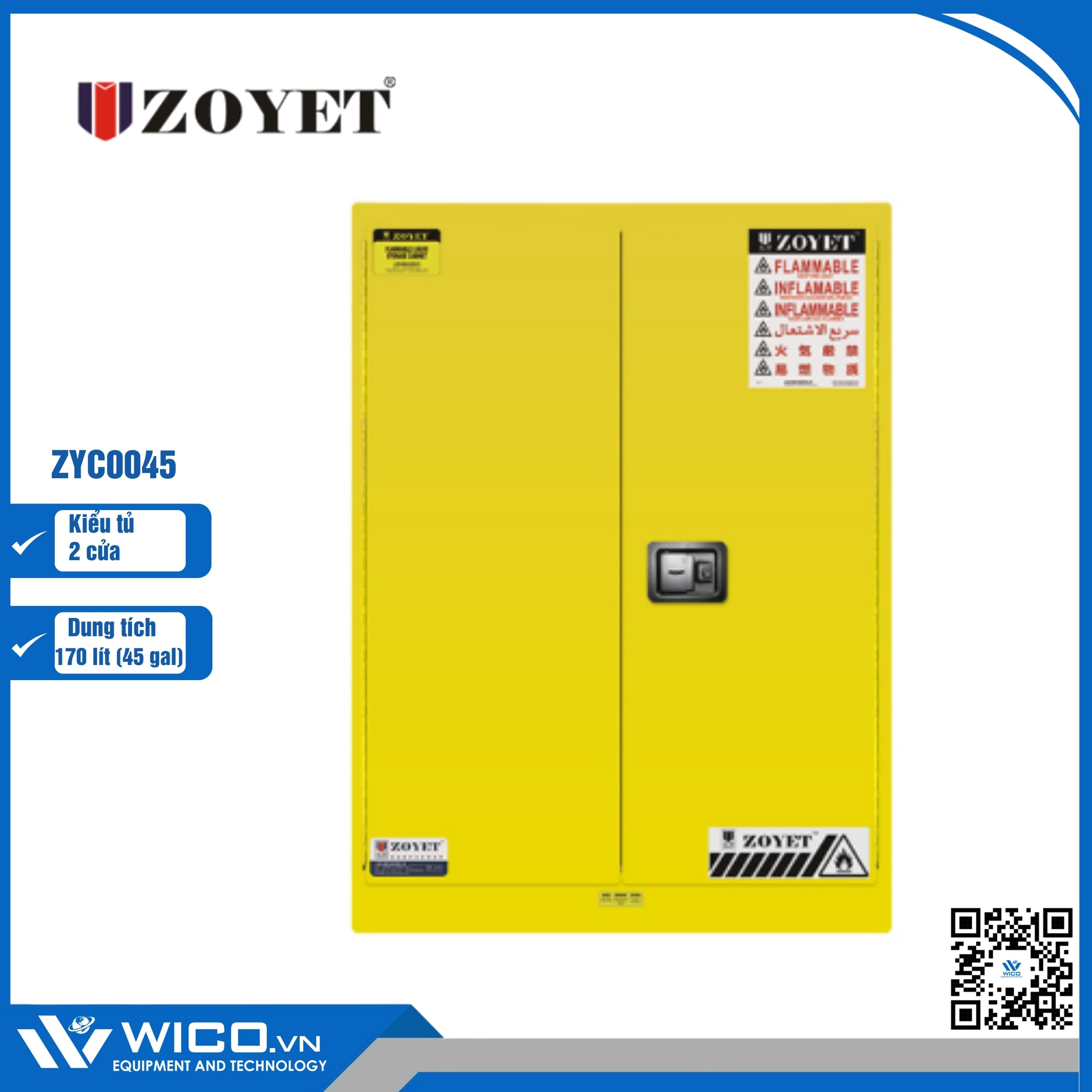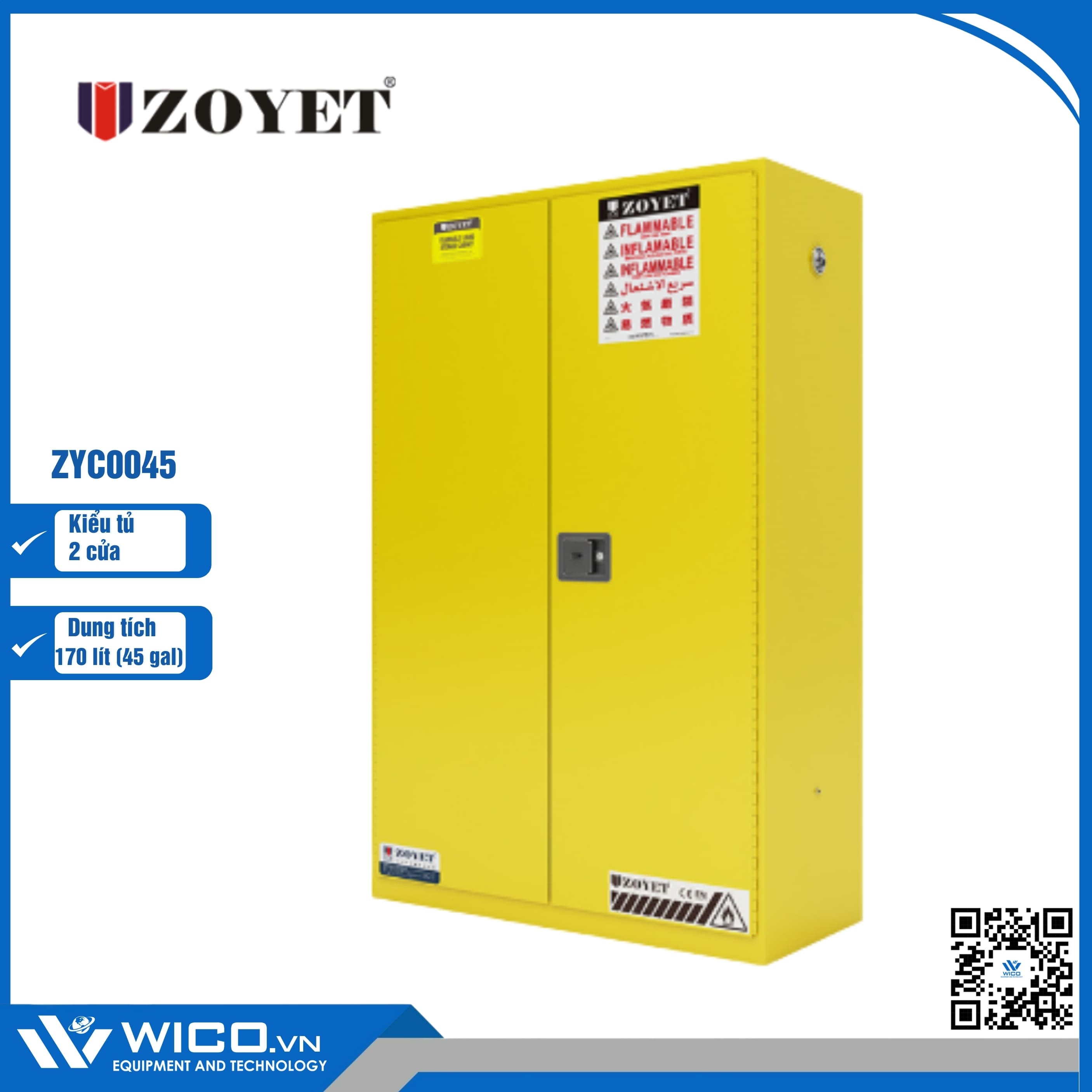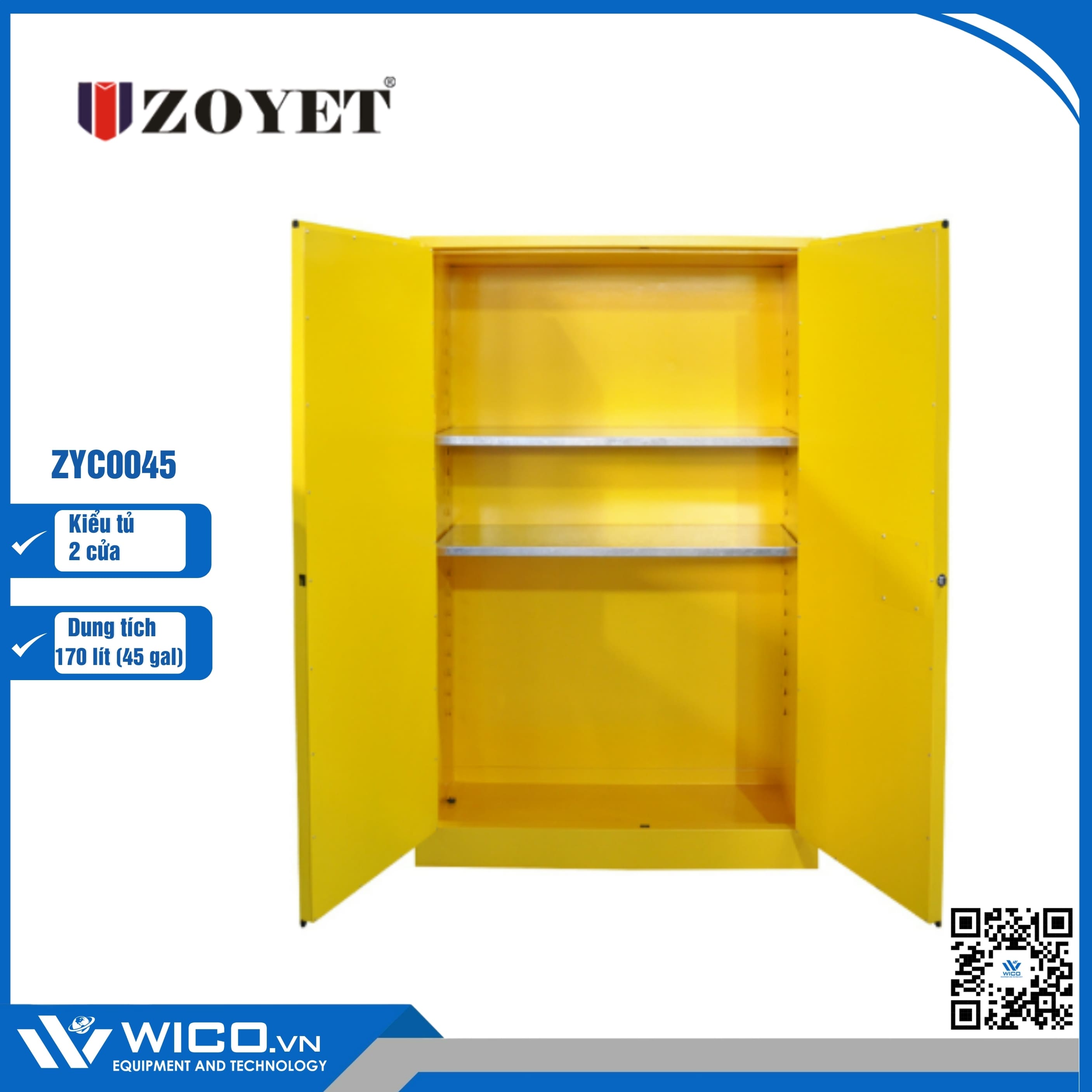 ZYC0045 ⭐ Tủ an toàn chống cháy 2 cửa với dung tích 170 lít (45 gal) do hàng Zoyet - Trung Quốc sản xuất. Sản phẩm được nhập khẩu và phân phối bởi Wico. Bảo hành 12 tháng, hỗ trợ giao hàng toàn quốc. Là thiết bị chuyên dụng để lưu trữ các chất dễ cháy, dễ nổ, độc hại hoặc các vật phẩm có giá trị cao, đảm bảo mang lại sự bảo vệ an toàn ở mức cao nhất