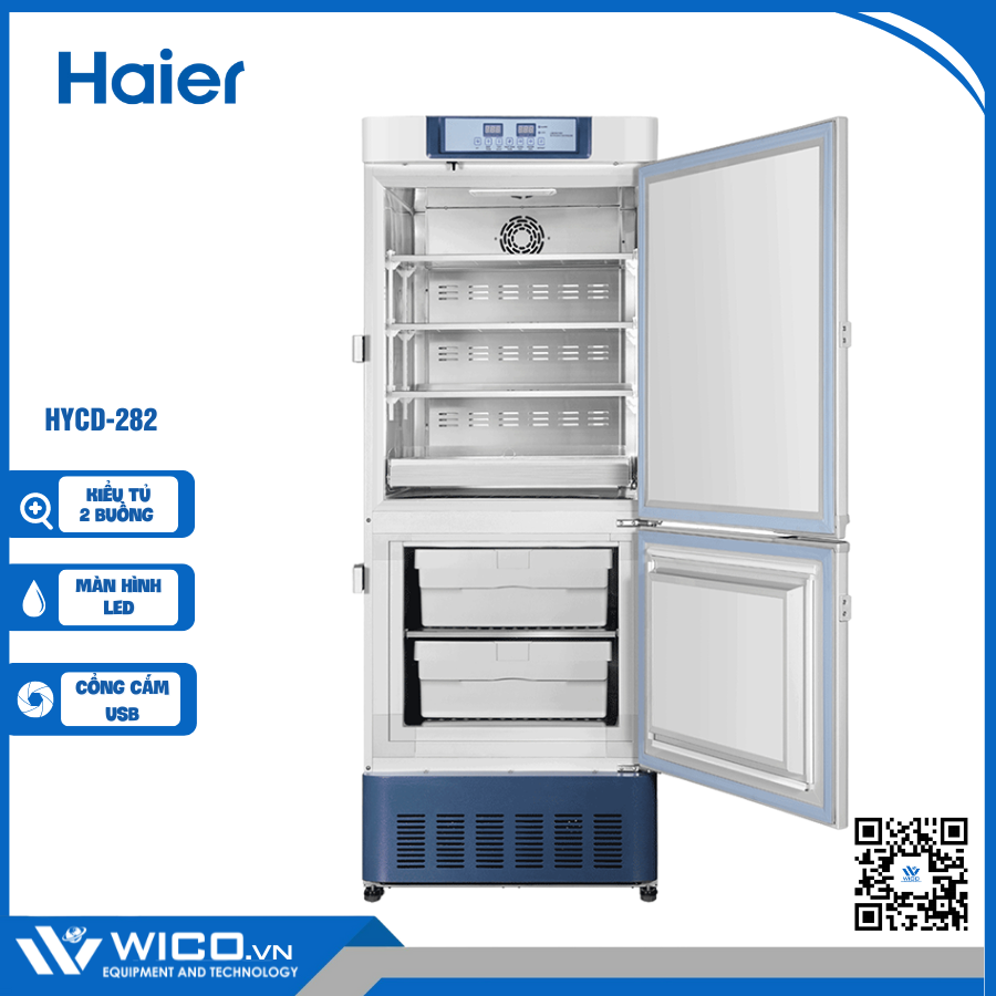 HYCD-282 (cửa kín) và HYCD-282A (của kính) ⭐ Tủ bảo quản 2 buồng tích hợp do hãng Haier BioMedical sản xuất. Với thiết kế 1 buồng 2-8 độ 185 lít và 1 buồng -20 đến -40 độ 97 lít giúp bảo quản mẫu ở 2 điều kiện riêng biệt. Sản phẩm được nhập khẩu và phân phối chính hãng bởi Wico. Bảo hành lên tới 12 tháng.