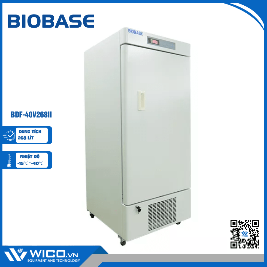 BDF-40V268II 🌟 Tủ lạnh âm sâu -40 độ C thiết kế kiểu đứng, với dung tích 268 lít và 4 khay đựng mẫu do hãng Biobase Trung Quốc thiết kế chế tạo.Tủ được sử dụng bảo quản Vắc xin hoặc các mẫu yêu cầu bảo quản âm sâu chẳng hạn như thí nghiệm khoa học ở nhiệt độ thấp, bảo quản tiểu cầu vật liệu sinh học, đặc tính y sinh của các sản phẩm quân sự. Sản phẩm chính hãng được nhập khẩu và phân phối chính hãng bởi Wico Việt Nam. Bảo hành lên tới 12 tháng. Hỗ trợ giao hàng trên toàn quốc.
