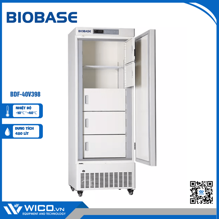 BDF-40V398II 🌟 Tủ lạnh âm sâu -40 độ C thiết kế kiểu đứng, với dung tích 398 lít và 3 khay đựng mẫu do hãng Biobase Trung Quốc thiết kế chế tạo.Tủ được sử dụng bảo quản Vắc xin hoặc các mẫu yêu cầu bảo quản âm sâu chẳng hạn như thí nghiệm khoa học ở nhiệt độ thấp, bảo quản tiểu cầu vật liệu sinh học, đặc tính y sinh của các sản phẩm quân sự. Sản phẩm chính hãng được nhập khẩu và phân phối chính hãng bởi Wico Việt Nam. Bảo hành lên tới 12 tháng. Hỗ trợ giao hàng trên toàn quốc.