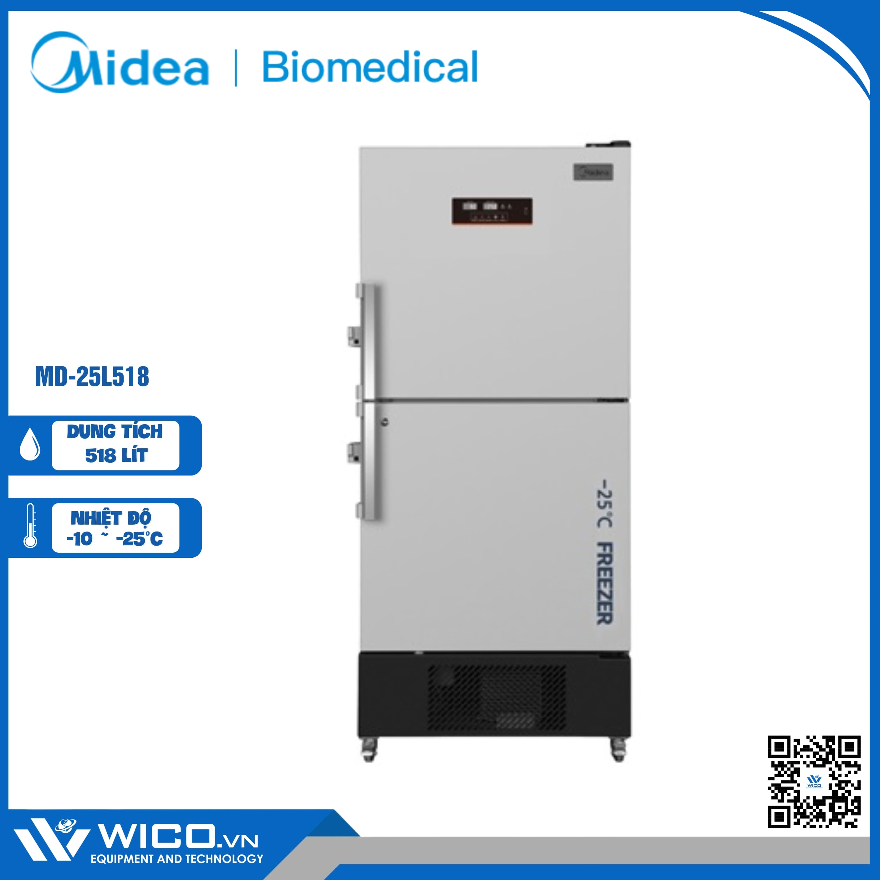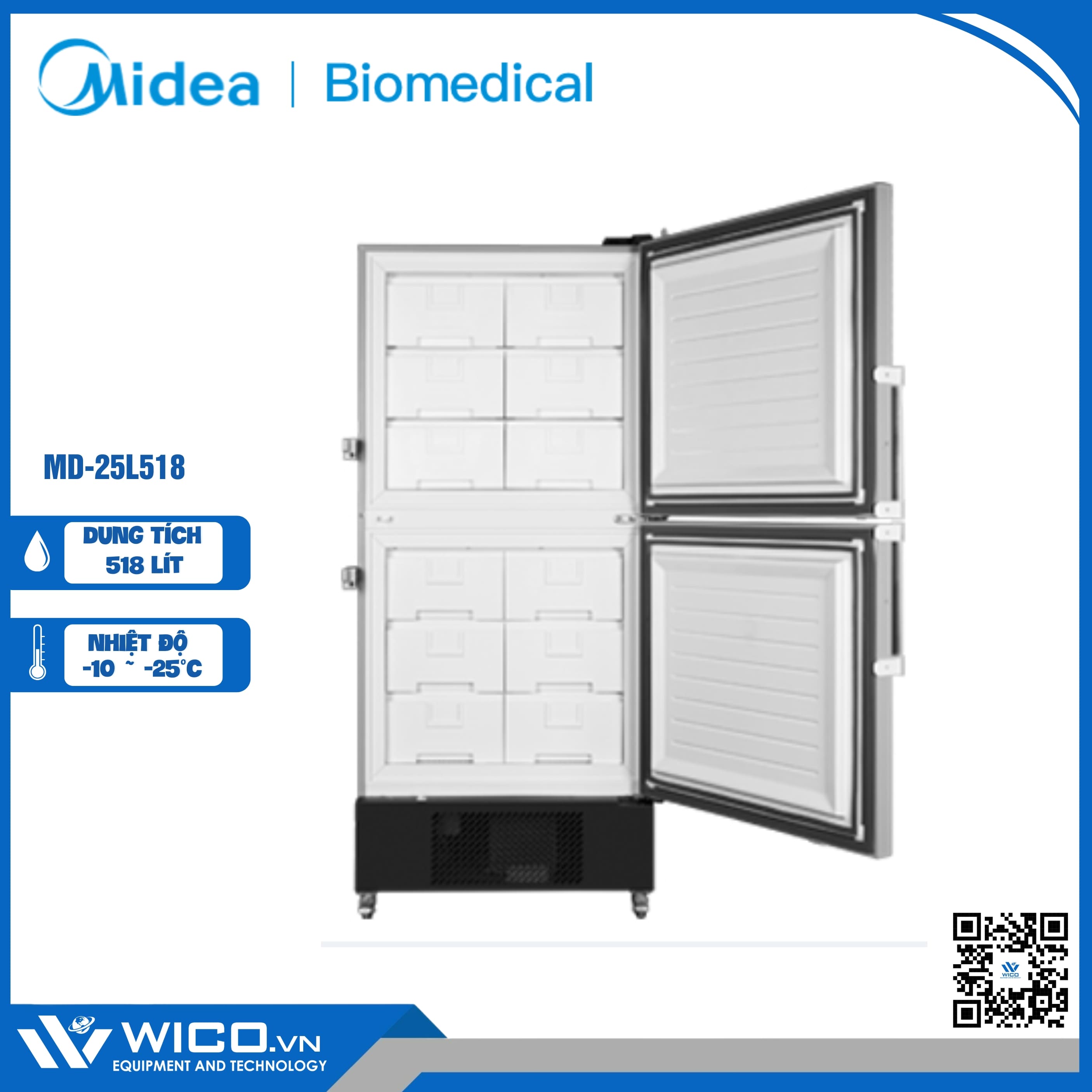 MD-25L518 là lạnh âm sâu -25 độ C với dung tích 518 lít. Tủ là thiết bị làm lạnh được thiết kế bảo quản vắc xin và phục vụ rộng rãi trong phòng lab nghiên cứu khoa học do hãng Midea - Trung Quốc thiết kế và chế tạo. Được nhập khẩu và phân phối chính hãng bởi Wico.vn. Bảo hành 12 tháng. Hỗ trợ giao hàng trên toàn quốc