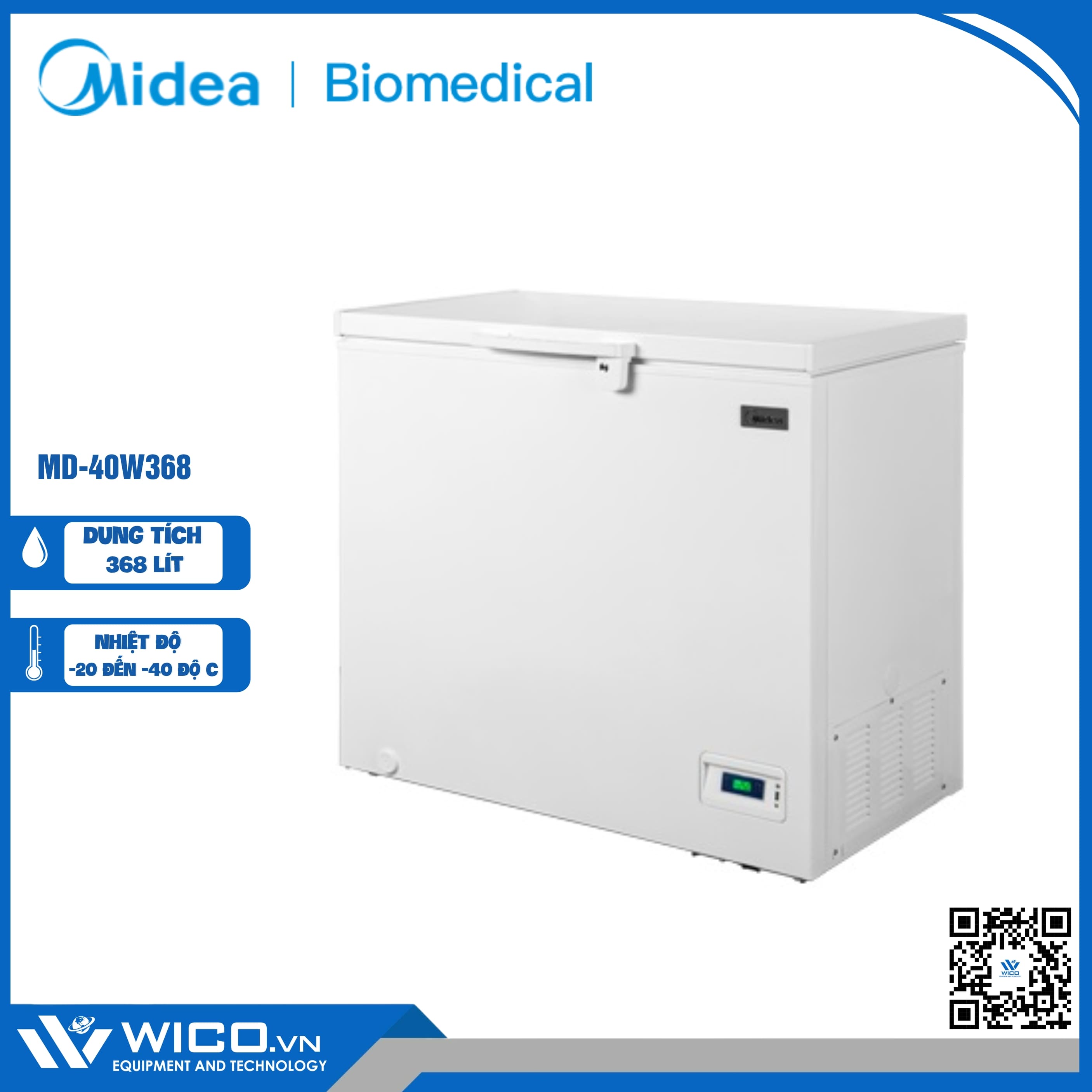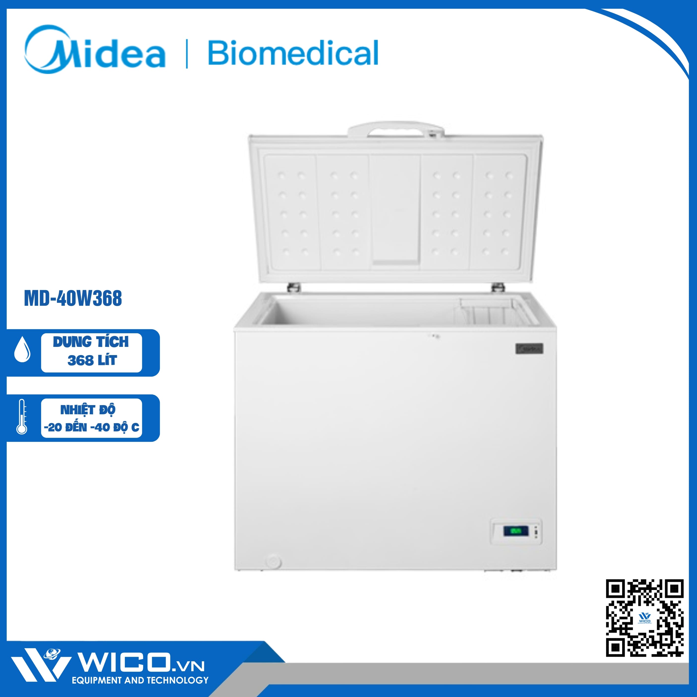 - Tủ lạnh âm sâu MD-40W368 dung tích 368 lít do hãng Midea sản xuất, được nhập khẩu chính hãng bởi công ty Wico.