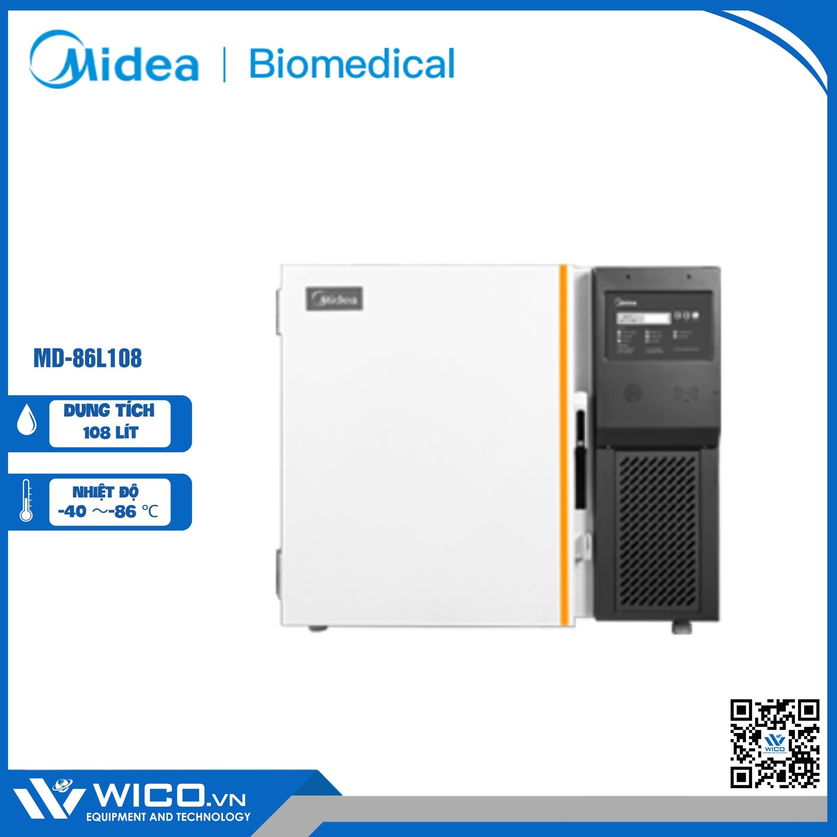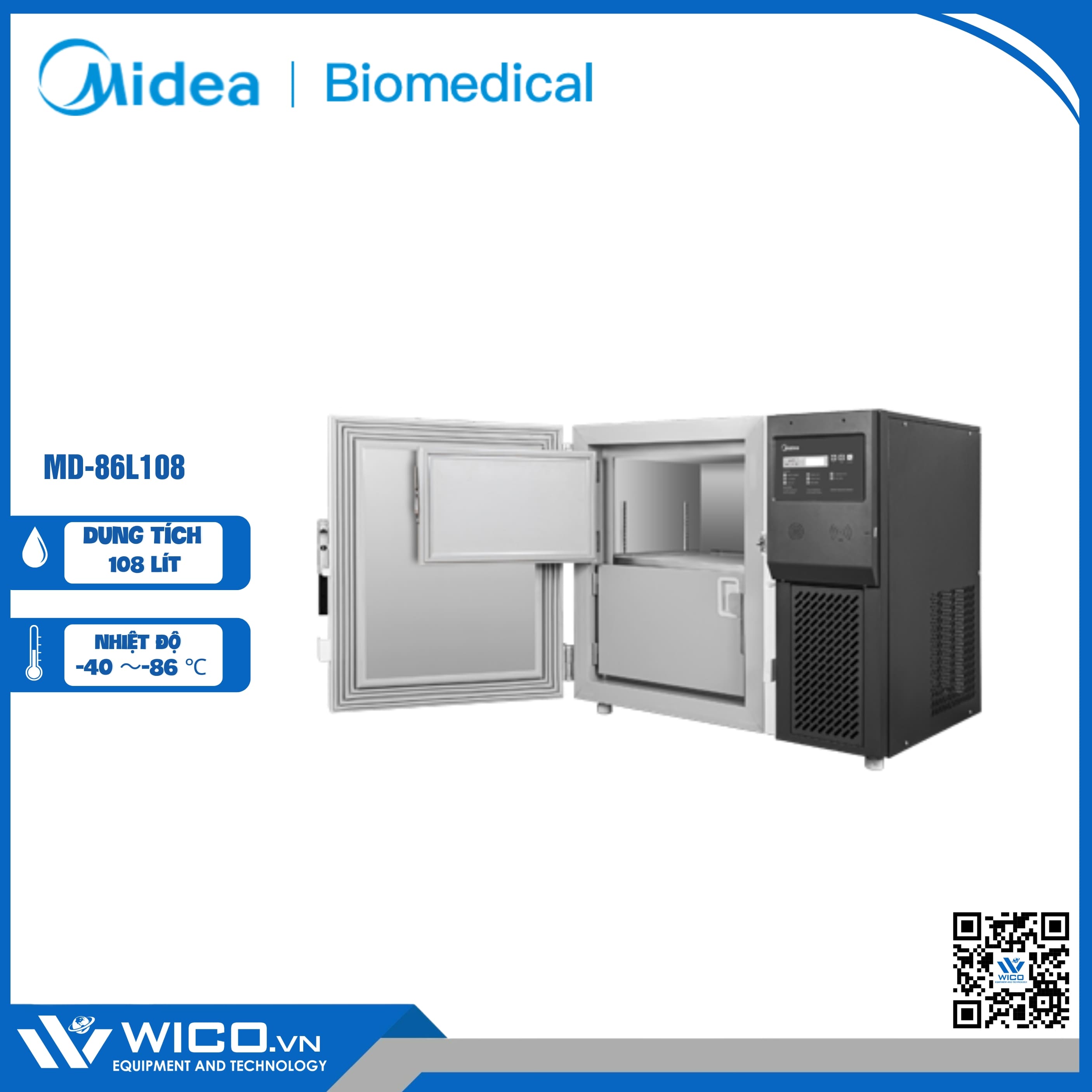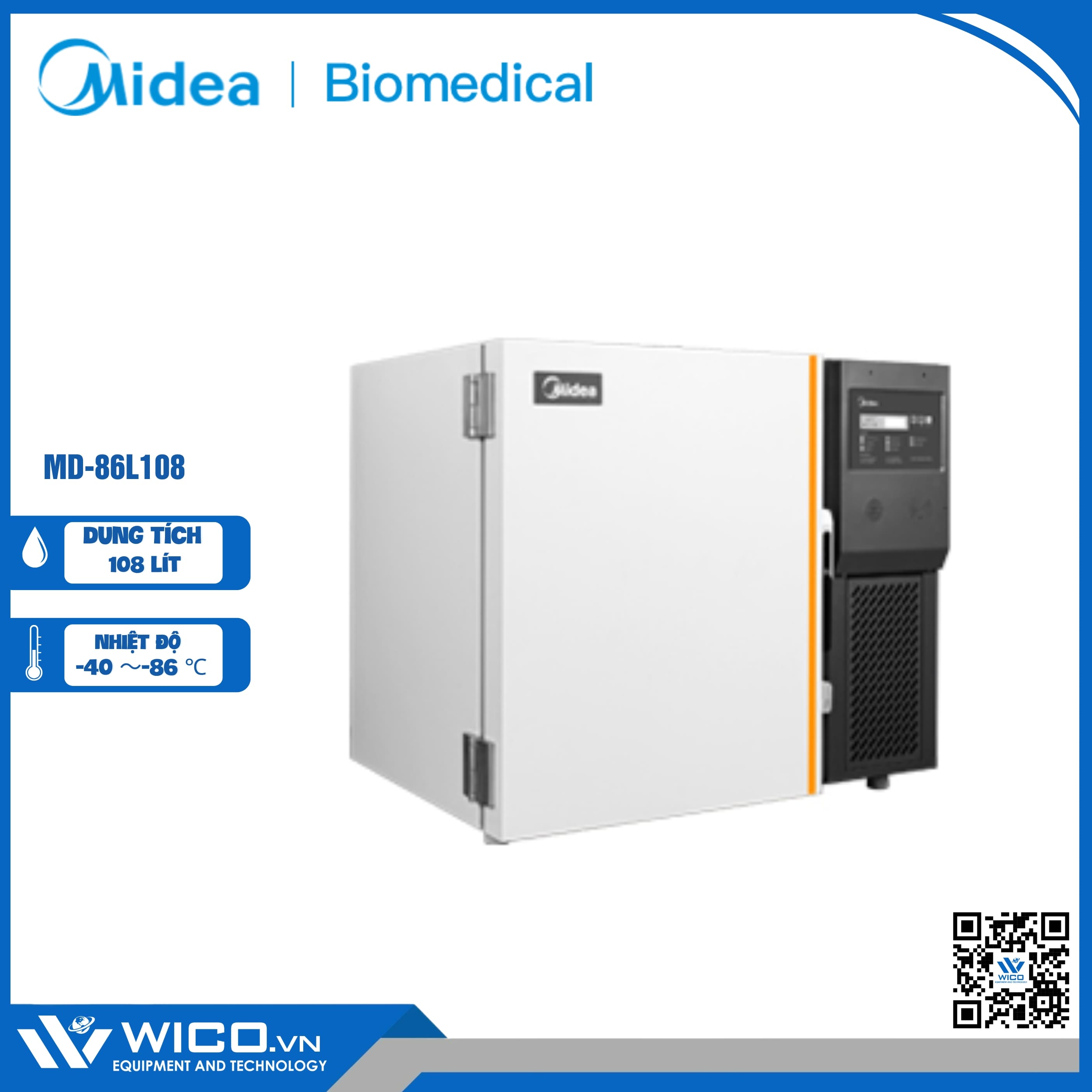 MD-86L108 là lạnh âm sâu -86 độ C với dung tích 108 lít. Tủ là thiết bị làm lạnh được thiết kế bảo quản vắc xin và phục vụ rộng rãi trong phòng lab nghiên cứu khoa học do hãng Midea - Trung Quốc thiết kế và chế tạo. Được nhập khẩu và phân phối chính hãng bởi Wico.vn. Bảo hành 12 tháng. Hỗ trợ giao hàng trên toàn quốc