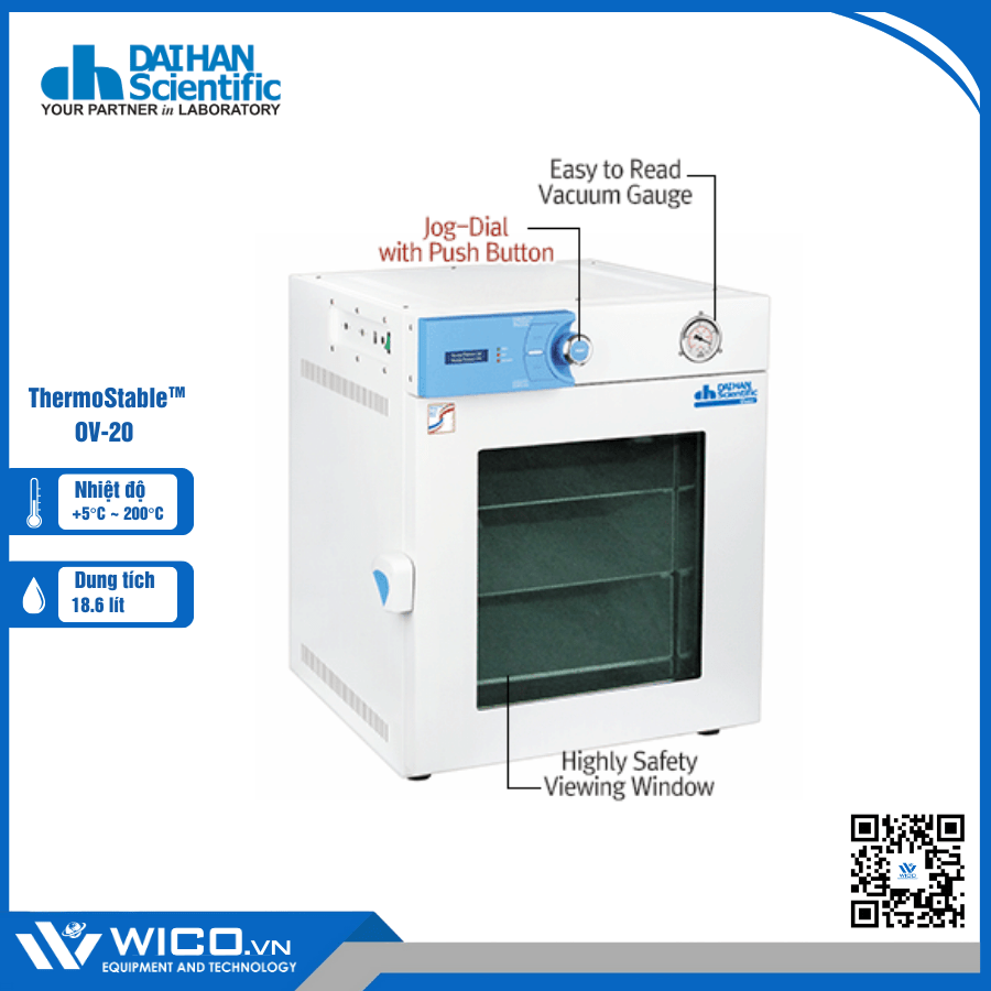 OV-20 🌟 Tủ sấy chân không với dung tích 18.6 lít, có nhiệt độ tối đa lên tới 200 độ C. Tủ được thiết kế và chế tạo bởi hãng Daihan - Hàn Quốc. Cửa kính cách nhiệt giúp quan sát bên trong an toàn. Với bộ điều khiển Jog-Dial và màn hình LCD Back-Light giúp kiểm soát nhiệt độ chính xác. Sản phẩm được nhập khẩu và phân phối chính hãng bởi Wico Việt Nam. Bảo hành lên tới 12 tháng. Hỗ trợ giao hàng toàn quốc.